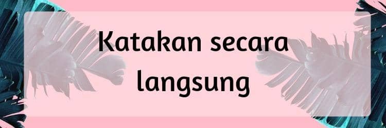 Hindari menyatakan perasaan lewat chat atau telepon. Bisa jadi itu waktu yang nggak tepat buatmu menyatakan perasaan. Bicarakan secara langsung dan jangan lewat perantara orang lain. Kamu harus mengumpulkan banyak keberanian untuk menyatakan perasaanmu. Dengan menyatakan secara langsung, kamu bisa tahu bahasa tubuhnya dan memprediksi jawabannya.