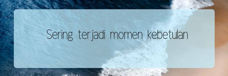Tiba-tiba, banyak hal kebetulan yang terjadi anatara kamu dengannya. Dia selalu berada di tempat yang sering kamu kunjungi. Padahal, seingatmu, sebelumnya dia tidak pernah berada di sana. Selain itu, banyak juga hal-hal kebetulan yang terjadi. Kamu jadi lebih sering melihatnya atau bahkan ngobrol satu atau dua kalimat. Bertanya tentang tugas kuliah atau kerjaan kantor mungkin.