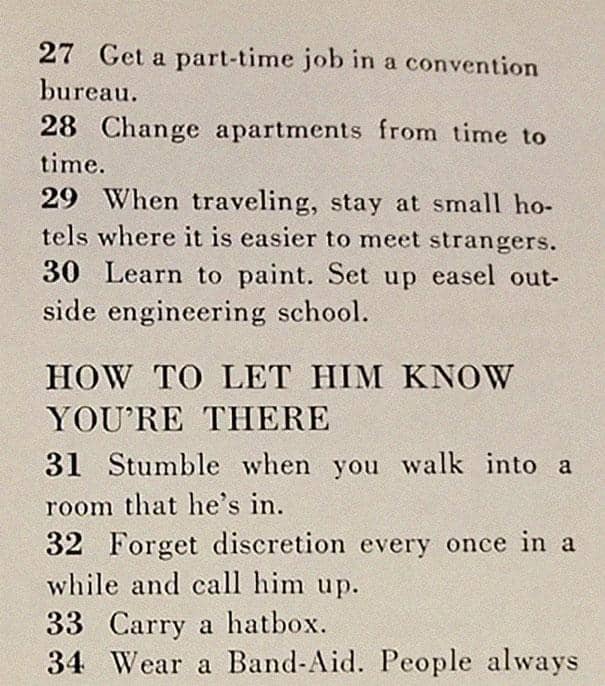 Tapi mungkin kamu akan terinspirasi (kalau tidak tertawa) dengan sebuah majalah tahun 1958 bertajuk McCall yang berhasil menghimpun 129 cara mencari suami. Kim Marx-Kuczynski menemukan dan membeli majalah ini lalu membagikannya pada kita semua tentang apa saja isinya.