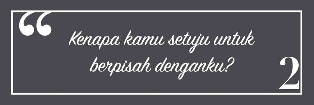 Jika kamu yang mempunyai inisiatif untuk berpisah, namun mengambil keputusan itu saat sedang marah dan kini merasa menyesal, pertanyaan ini akan membantumu menemukan kebenaran yang sesungguhnya. Apakah dia memang hanya sedang menunggumu untuk meminta perpisahan, atau merasa bahwa perpisahan memang jalan yang tepat untuk kalian.