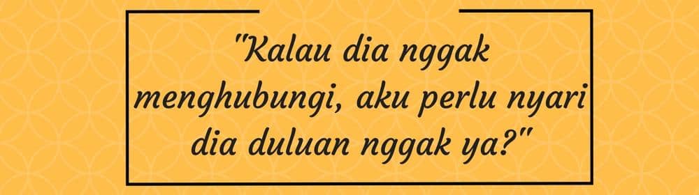 Ketika kamu menantikan panggilan telepon darinya yang tak kunjung datang, kamu mulai ragu apakah sebaiknya kamu menghubunginya terlebih dulu. Bela, kalau dia benar-benar menyukaimu, dia tidak akan menunda-nunda waktu untuk segera berinteraksi denganmu. Sebisa mungkin dia mencari cara untuk tetap terkoneksi denganmu. Jangan sampai kamu terlihat begitu desperate dan ingin selalu bareng bersamanya.