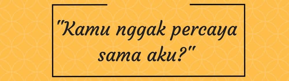 Ada saat-saat dimana kamu menaruh curiga pada si dia. Mungkin gerak-geriknya buat kamu berpikir dia selingkuh di belakangmu. Si dia juga akan mengatakan pertanyaan yang sama ketika memintamu melakukan hal yang membuatmu kurang nyaman. Kalau kamu tidak suka, katakan tidak tanpa ragu. Cobalah untuk bicara jujur tentang pemikiranmu dan perasaanmu.