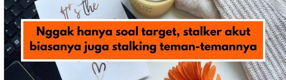 Mungkin sudah saatnya jika stalking ini dijadikan salah satu hobi generasi masa kini. Sebab, sudah banyak sekali orang yang nggak sadar jika sudah membuang banyak waktu hanya untuk scroll timeline atau mencari tahu bagaimana kehidupan dunia maya gebetan atau bahkan mantan pacar.