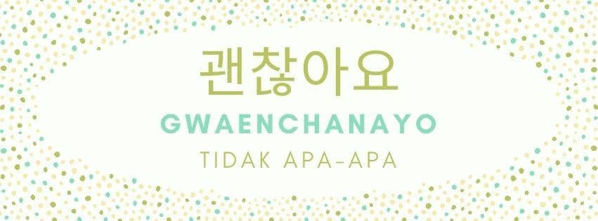 Mungkin kamu sudah sering mendengar kosakata yang satu ini. Kata "gwaenchanayo" ini dapat digunakan ketika kamu ingin mengatakan bahwa kamu tidak apa-apa.