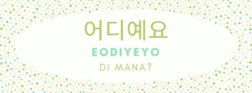 "Eodiyeyo" bisa digunakan untuk menanyakan keberadaan orang, tempat atau barang. Misalnya "jigeum eodiyeyo" (지금 어디예요) yang berarti "kamu di mana?". Bisa juga "hwajangsil eodiyeyo" ( 화장실 어디예요?) yang berarti "toilet di mana?".