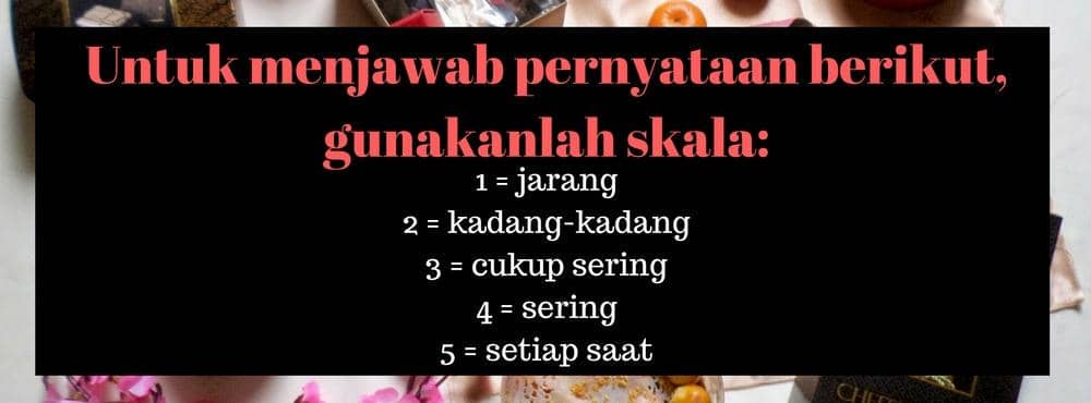 Kalau kamu sudah menjawab semuanya, sekarang coba jumlahkan berapa poin yang kamu dapatkan. Total poinmu diklasifikasikan seperti berikut: