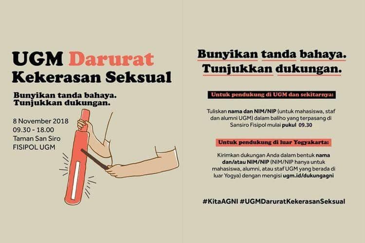 Gerakan ini berawal dari sebuah artikel yang dipublikasikan oleh Balairung Press yang berjudul Nalar Pincang UGM atas Kasus Perkosaan pada 5 November 2018 lalu. Tulisan tersebut viral karena mengungkap pengakuan salah seorang mahasiswi Fisipol UGM yang pernah mengalami pelecehan seksual oleh rekan KKN-nya berinisial HS. Perempuan yang disebut Agni (nama samaran) tersebut menjelaskan kronologinya dan bagaimana kejadian yang membuatnya trauma itu terjadi. Yang membuat berita ini dibahas di berbagai media adalah sikap pihak kampus yang terkesan lambat dalam menyikapi kasus ini. Nggak hanya itu, nggak sedikit yang cenderung menyalahkan Agni atas kejadian yang ia alami.