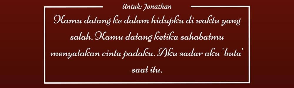 Katanya, kisah cinta pertama adalah kisah cinta yang paling sulit untuk dilupakan. Karena dia yang memberikan pengalaman baru dalam hidup untuk pertama kalinya. Dia yang mengenalkan kamu tentang apa arti cinta dan perasaan saling memiliki. Sayangnya, tak banyak dari kita yang bisa terus bersama sang cinta pertama. Hal ini menginspirasi Rora Blue, seorang blogger asal California, untuk membuat The Unsent Project. Ia menampung pesan-pesan yang tak pernah dikirimkan pemiliknya untuk sang cinta pertama di blog pribadinya. Ia juga mencetak beberapa pesan yang dikirimkan padanya dan memamerkannya di akun Instragam. Inilah beberapa pesan yang akan buatmu teringat kembali kenangan bersamanya.