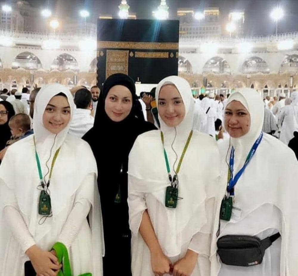 2. Ciki bersama ketiga kakaknya, Erica Putri Siregar, Christina Ladya Siregar, dan Fitri Agustina Siregar ketika melaksanakan umrah.