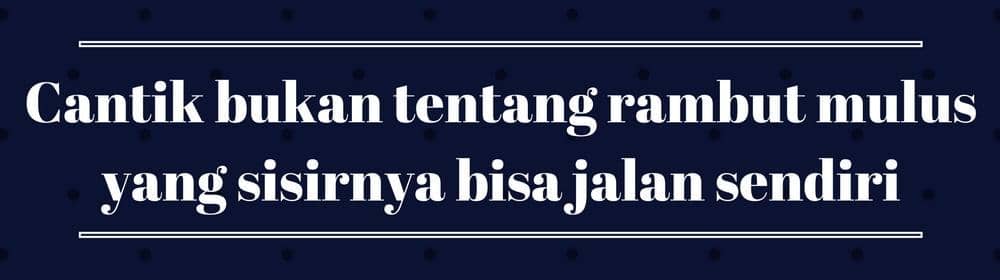 Aku tahu rambutmu bisa sebening iklan sampo, bersinar menarik tangan-tangan lelaki untuk membelai dan merengkuhnya. Berbanggalah lalu menangislah karena kecantikan yang sebenarnya bukan itu.