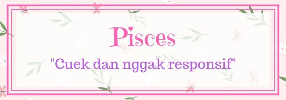 Pisces memiliki kepribadian yang super sensitif. Mereka senang curhat dan butuh pasangan yang mau menemaninya saat melewati masa-masa sulit. Pisces adalah sosok yang sangat perhatian pada pasangannya dan berusaha selalu ada untuknya. Namun, ketika Pisces sudah memberikan waktu dan tenaga untuk pasangannya sementara dia justru cuek-cuek saja, maka bukan mustahil kalau Pisces akan segera mengakhiri hubungan tersebut.