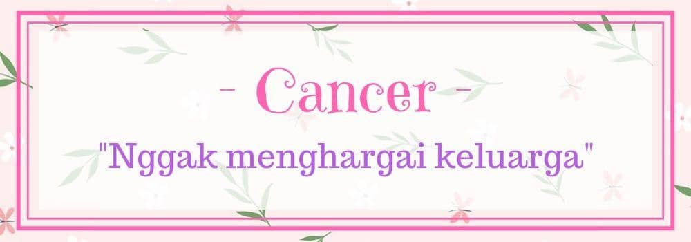 Pemilik zodiak Cancer anti pada orang-orang yang nggak peduli dengan keluarga mereka sendiri. Bagi Cancer, keluarga adalah bagian terpenting dalam hidupnya. Nggak heran jika mereka selalu mengingat momen-momen penting dalam keluarga, seperti ulang tahun anggota keluarganya atau anniversary pernikahan orangtuanya. Menurut Cancer, orang yang nggak menyayangi dan menghargai keluarganya sendiri bukanlah pasangan yang tepat untuknya.