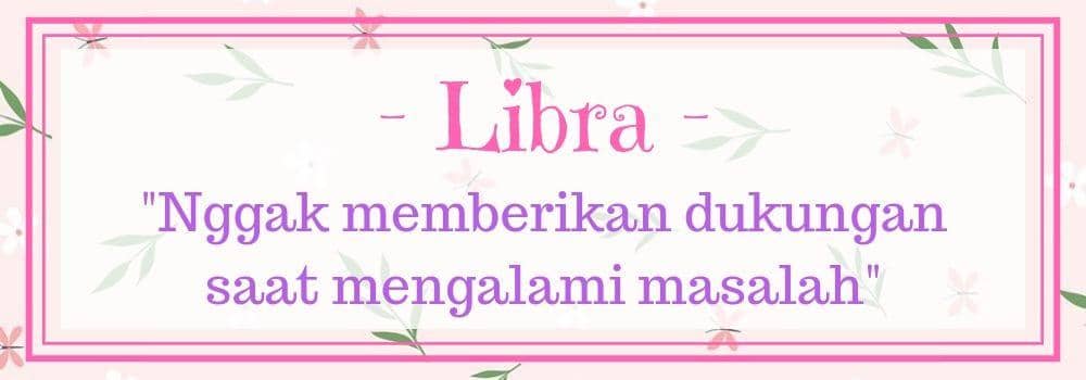 Sifat Libra yang friendly membuatnya mudah beradaptasi dalam suatu hubungan. Mereka juga dikenal sebagai tipe yang akan melakukan segalanya untuk orang yang mereka cintai. Tetapi, ketika dia sedang membutuhkan dukungan sementara pasangannya nggak ada, maka ini bisa menimbulkan masalah besar. Pasalnya, Libra membutuhkan pasangan yang bisa selalu ada dan memberinya dukungan ketika mereka mengalami masa-masa sulit.